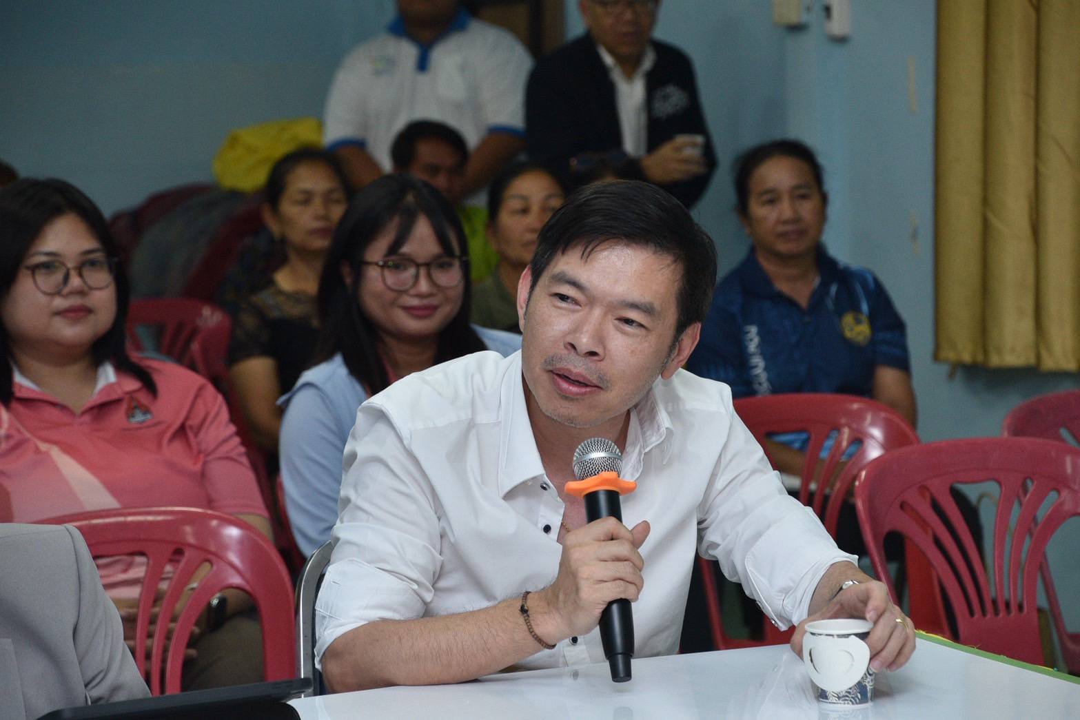จากนั้นคณะทั้งหมดได้ตามไปดูงานการบริหารจัดการน้ำระดับตำบลในมิติ "การเสริมสร้างความเข้มแข็งของชุมชนจัดการน้ำ พัฒนาอาชีพ” ณ องค์การบริหารส่วนตำบลกุดเพียขอม โดยมีผู้แทนชุมชนจาก 3 ตำบล ร่วมดำเนินการ ได้แก่ ตำบลกุดเพียขอม ตำบลศรีบุญเรือง และตำบลหนองมะเขือ เข้าร่วมแลกเปลี่ยนประสบการณ์ การใช้ระบบสารสนเทศสำรวจแหล่งน้ำตนเอง การวิเคราะห์สมดุลน้ำ การวางแผนการใช้น้ำเพื่อเกษตรทางเลือก ทำให้สมาชิกที่เข้าร่วมโครงการมีรายได้เพิ่ม และเป็นต้นแบบการดำเนินงานที่สามารถแก้ไขปัญหา ”แก้หนี้ แก้จน“ ชุมชนมีน้ำใช้ได้จริง