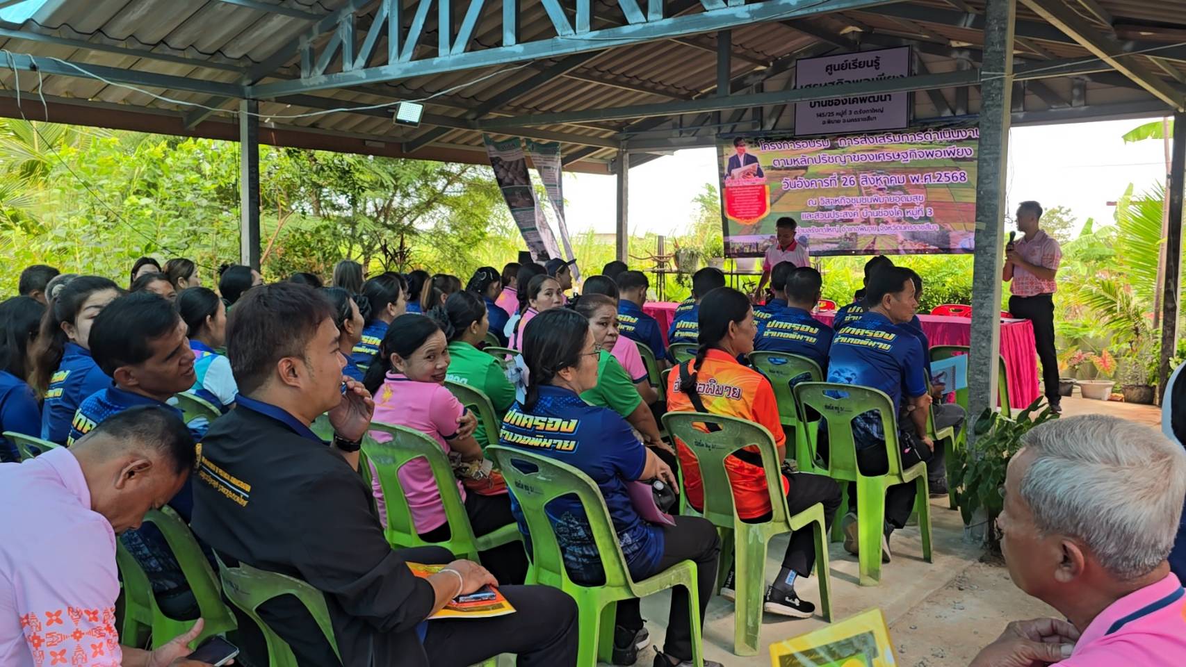 นายธงชัย โพธิ์สว่าง ที่ปรึกษาวิสาหกิจชุมชนฯ กล่าวเสริมว่า “พวกเราโชคดี ต้องขอบคุณ ‘ธนาคารที่ดิน’ ทำให้มีที่อยู่ที่อาศัยที่ทำกิน ‘ธนาคารที่ดิน’ ถือเป็นหน่วยงานหลักในการช่วยเหลือประชาชนเกื้อกูลให้คนในสังคมมีที่อยู่อาศัย นอกจากนั้นยังเข้ามาอบรมพัฒนาเรื่องอาชีพ การพัฒนาที่ดิน และประสานความร่วมมือกับหน่วยงานอื่นเข้ามาช่วยเหลือด้วย โดยเฉพาะการอบรมเรื่องหลักปรัชญาเศรษฐกิจพอเพียง ชาวบ้านนำมาปรับใช้ให้เหมาะกับบริบทพื้นที่ของตัวเอง รู้จักแบ่งปันกัน พึ่งพากัน ช่วยกันทำมาหากิน ประชาชนส่วนใหญ่ที่เป็นฐานรากของประเทศไม่มีที่ทำกิน ‘ธนาคารที่ดิน’ จึงเป็นหน่วยงานหนึ่งที่ช่วยเสริมสร้างความมั่นคงให้กับประเทศชาติ”