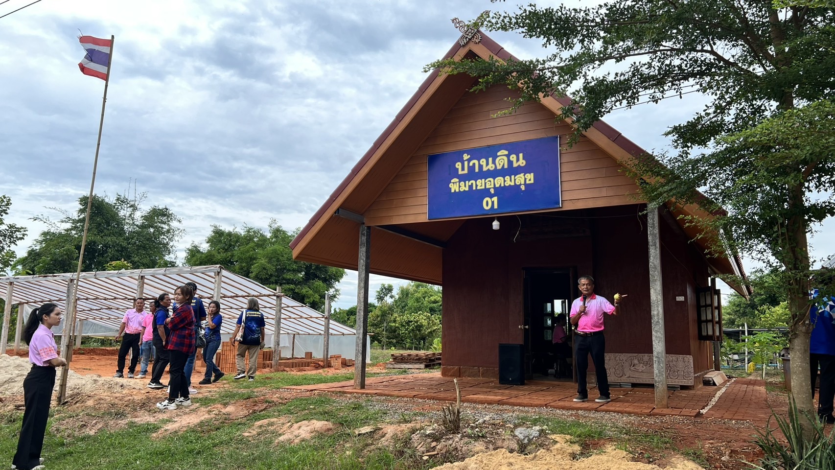 นายปิยะวิทย์ บุญถือ สมาชิกวิสาหกิจชุมชนฯ กล่าวว่า “เมื่อก่อนชีวิตลำบากพาครอบครัวเร่ร่อนหาปลาเลี้ยงหลานตามเขื่อนทั่วนครราชสีมาและชัยภูมิ พอทราบว่ามีโครงการช่วยเหลือด้านที่ทำกินของ ‘ธนาคารที่ดิน’ จึงสมัครเข้าร่วมโครงการ จนได้รับการช่วยเหลือดีใจมาก ๆ พาภรรยา ลูกหลานมาอยู่รวมกัน เริ่มต้นได้ทุนปรับปรุงพื้นที่ สร้างบ้านพออยู่ได้ ขุดบ่อเลี้ยงปลา ปลูกผัก รับจ้างขายของเลี้ยงครอบครัว ‘ธนาคารที่ดิน’ ยังส่งไปอบรมศาสตร์พระราชา ร่วมถึงปี 2568 พอช. สนับสนุนทุนสร้างบ้าน แทนหลังเก่าทรุดโทรม ต้องขอขอบคุณ ‘ธนาคารที่ดิน’ และ พอช. และหน่วยงานราชการทุกหน่วยที่ให้ความช่วยเหลือประชาชนครับ”