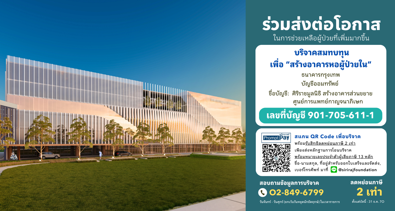 ช่วยระดมทุนสร้างอาคารหอผู้ป่วยใน ศูนย์การแพทย์กาญจนาภิเษก