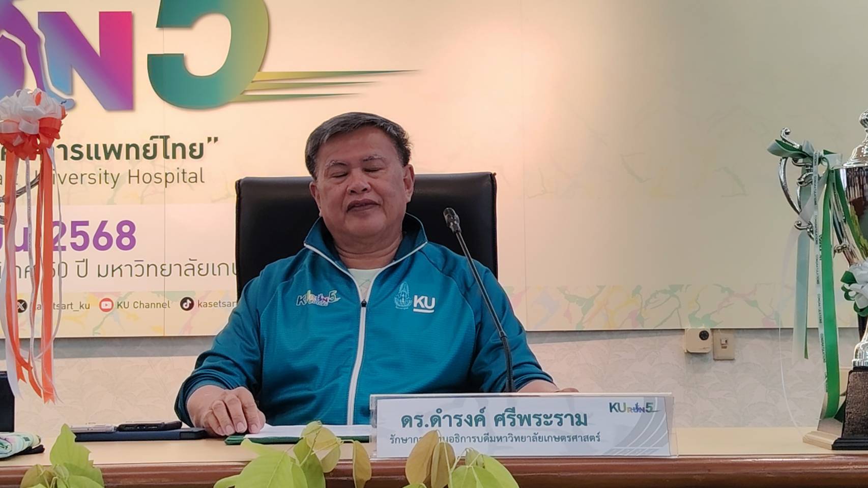 วันที่ 30 กันยายน 2568 มหาวิทยาลัยเกษตรศาสตร์ ร่วมกับ สมาคมนิสิตเก่ามหาวิทยาลัยเกษตรศาสตร์ ในพระบรมราชูปถัมภ์ จัดงานแถลงข่าวโครงการ KU RUN # 5 charity “วิ่งด้วยใจ สานฝันอนาคตการแพทย์ไทย” ณ ห้องประชุมกำพล อดุลวิทย์ ชั้น 2 อาคารสารนิเทศ 50 ปี มก.