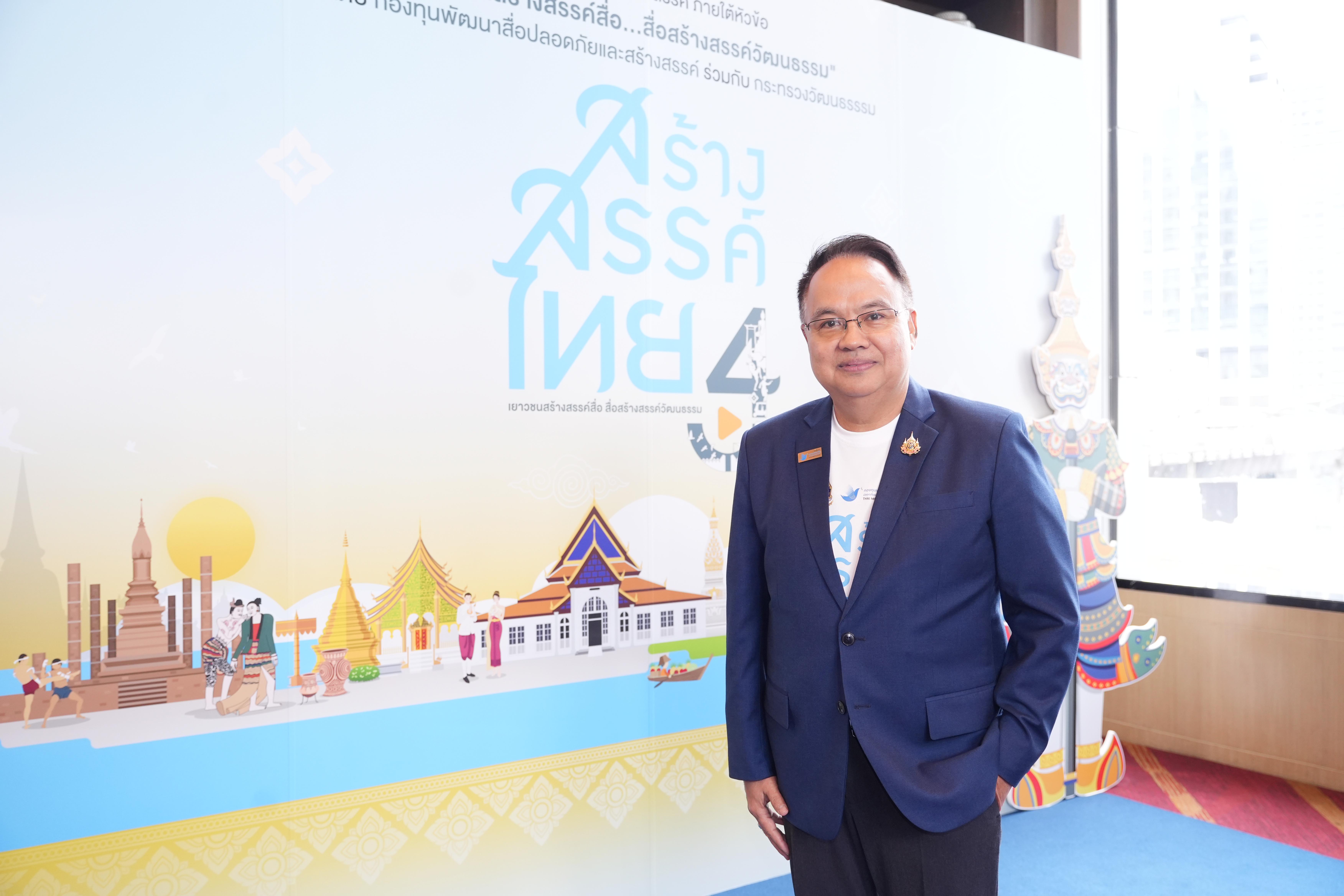 นายธนกร ศรีสุขใส ผู้จัดการกองทุนพัฒนาสื่อปลอดภัยและสร้างสรรค์ กล่าวว่า กิจกรรมการประกวดสื่อสร้างสรรค์ของเด็กและเยาวชนในหัวข้อ “เยาวชนสร้างสรรค์สื่อ...สื่อสร้างสรรค์วัฒนธรรม” ภายใต้โครงการ “สร้างสรรค์ไทย 4” ดำเนินต่อเนื่องเป็นปีที่ 4 ซึ่งเกิดจากความตระหนักของกองทุนพัฒนาสื่อปลอดภัยและสร้างสรรค์ที่เล็งเห็นความสำคัญของเด็กและเยาวชนในฐานะขุมกำลังทางปัญญาของชาติ ที่มีบทบาทสำคัญในการสืบสานและต่อยอดคุณค่าทางวัฒนธรรมของท้องถิ่น โครงการนี้เป็นอีกหนึ่งเวทีสำคัญที่มุ่งส่งเสริมศักยภาพเชิงสร้างสรรค์ของเยาวชนไทย สอดคล้องกับนโยบายรัฐบาลในการผลักดันอุตสาหกรรมสื่อสร้างสรรค์ของประเทศ พัฒนาอุตสาหกรรมเศรษฐกิจสร้างสรรค์ และยกระดับการท่องเที่ยวเชิงคุณภาพให้เป็นที่ยอมรับทั้งในระดับประเทศและนานาชาติ