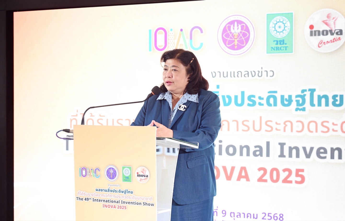 ดร.วิภารัตน์ ดีอ่อง ผู้อำนวยการสำนักงานการวิจัยแห่งชาติ กล่าวว่า วช. ส่งเสริมให้นักวิจัยและนักประดิษฐ์ไทยเข้าร่วมเวทีนานาชาติ เพื่อพัฒนาศักยภาพและเผยแพร่ผลงานสู่ระดับนานาชาติ ซึ่งเป็นกลไกในการขยายโอกาสและสร้างเครือข่ายความร่วมมือด้านนวัตกรรม เวทีการประกวดระดับนานาชาติ “The 49th International Invention Show” (INOVA 2025) จัดขึ้นที่ประเทศโครเอเชีย มีผลงานเข้าร่วมกว่า 400 ชิ้นจากกว่า 20 ประเทศทั่วโลก ประเทศไทยส่งผลงาน 18 ชิ้น จาก 10 หน่วยงาน ทั้งภาครัฐ เอกชน และสถาบันการศึกษา ซึ่งผลงานของไทยสามารถคว้ารางวัล INOVA 1 Runner และรางวัลพิเศษ (Special Prize) จากสาธารณรัฐโรมาเนีย สะท้อนถึงความสามารถ ความคิดสร้างสรรค์ และความมุ่งมั่นของนักประดิษฐ์ไทย ความร่วมมือนี้ช่วยเสริมภาพลักษณ์ของประเทศในด้านวิทยาศาสตร์ เทคโนโลยี และนวัตกรรมเป็นแรงบันดาลใจให้เยาวชนและนักวิจัยรุ่นใหม่สร้างสรรค์ผลงานคุณภาพ