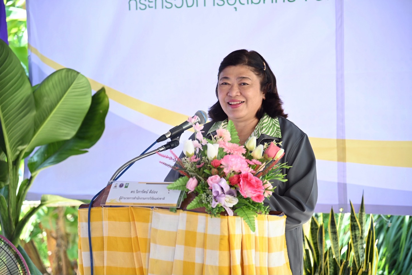 ดร.วิภารัตน์ ดีอ่อง ผู้อำนวยการสำนักงานการวิจัยแห่งชาติ กล่าวว่า โครงการ “การยกระดับผลิตภัณฑ์เกษตรแปรรูปครบวงจรระดับชุมชนในพื้นที่จังหวัดนครพนม” เป็นสร้างชุมชนต้นแบบที่ยกระดับประสิทธิภาพการผลิต ด้วยวิจัยและนวัตกรรมตามโจทย์ความต้องการของพื้นที่ โดยนำเทคโนโลยีและนวัตกรรมมาใช้ในการพัฒนาผลิตภัณฑ์การเกษตรอย่างครบวงจร ทั้งในด้านเทคนิค วิธีการ และอุปกรณ์ ตลอดจนการจัดอบรมส่งเสริมความรู้เพื่อสร้างทักษะและความเข้าใจแก่ผู้มีส่วนเกี่ยวข้องในวิสาหกิจชุมชน ซึ่งจะนำไปสู่การแก้ไขปัญหาด้านผลผลิตทางการเกษตรได้อย่างเป็นรูปธรรม สร้างรายได้ เพิ่มโอกาสทางเศรษฐกิจฐานราก และเสริมสร้างความเข้มแข็งของชุมชนให้มีความยั่งยืน