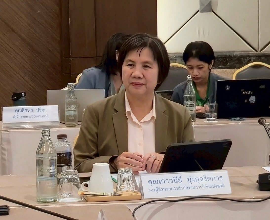 วันที่ 14 ตุลาคม 2568 สำนักงานการวิจัยแห่งชาติ (วช.) กระทรวงการอุดมศึกษา วิทยาศาสตร์ วิจัยและนวัตกรรม โดย ดร.วิภารัตน์ ดีอ่อง ผู้อำนวยการสำนักงานการวิจัยแห่งชาติ มอบหมายให้ น.ส.เสาวนีย์ มุ่งสุจริตการ รองผู้อำนวยการสำนักงานการวิจัยแห่งชาติ เข้าร่วมการประชุมเตรียมความพร้อมในการขับเคลื่อนการอนุรักษ์โลมาอิรวดีทะเลสาบสงขลา ด้วยวิจัยและนวัตกรรม ณ ห้องประชุมเก้าแสน โรงแรมลีการ์เดนส์พลาซ่า หาดใหญ่
