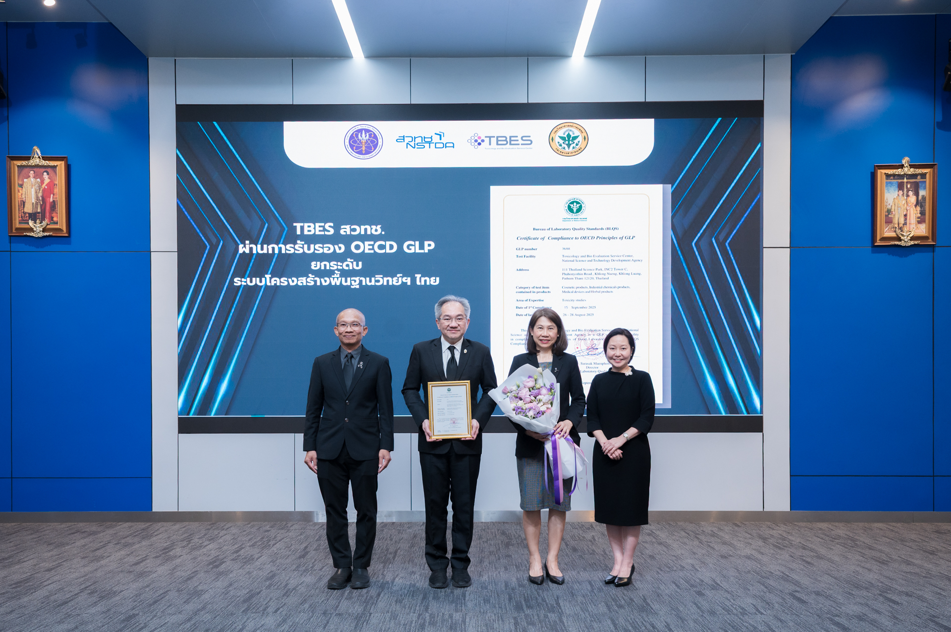 สวทช. ชูศักยภาพด้านการทดสอบความปลอดภัยระดับโลก ”TBES-NSTDA” ผ่านการรับรอง OECD GLP ยกระดับระบบโครงสร้างพื้นฐานวิทยาศาสตร์ของไทย