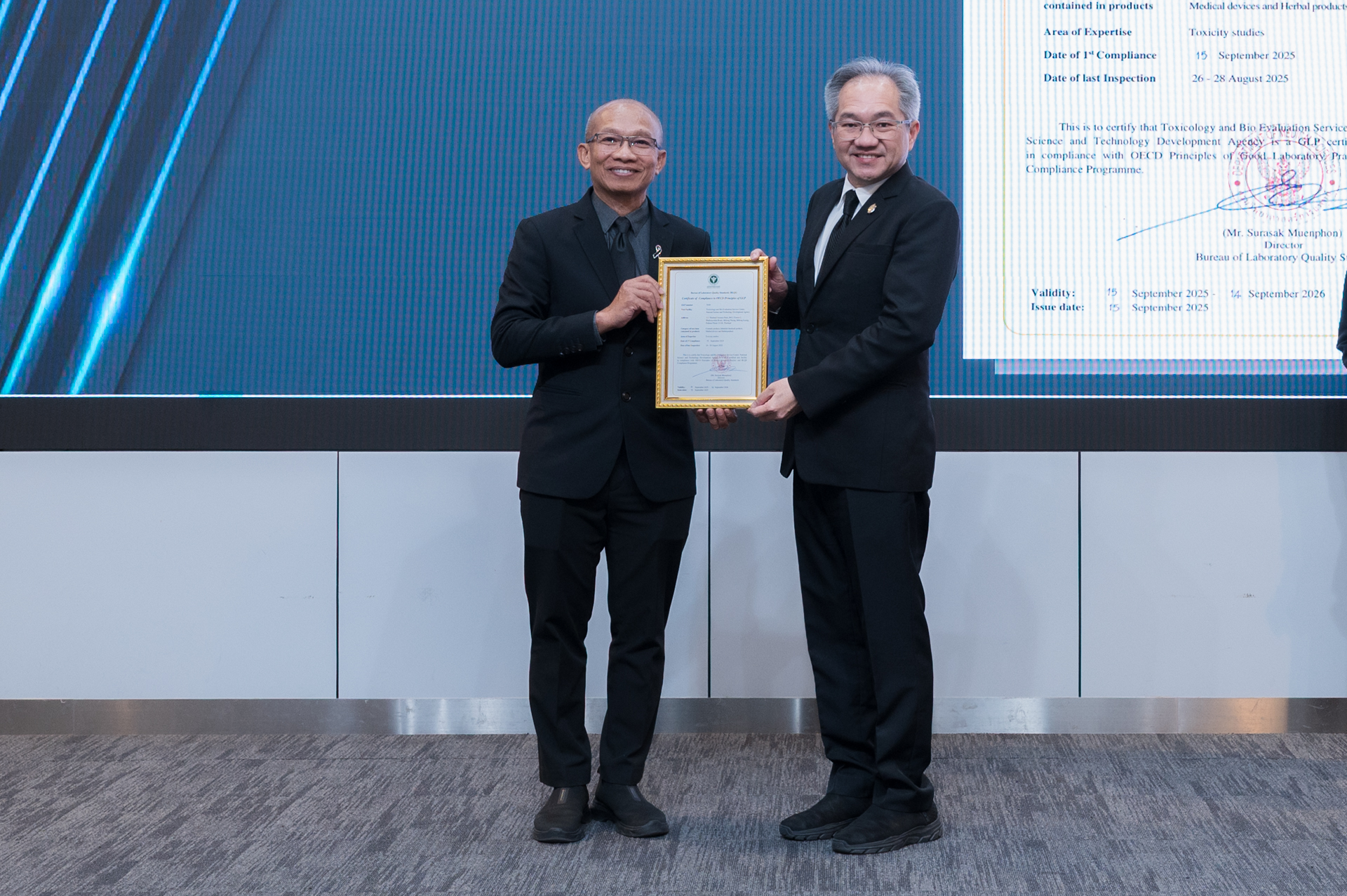 โดยการได้รับรอง OECD GLP ในขอบข่ายการศึกษาทางพิษวิทยาครั้งนี้ สะท้อนถึง ศักยภาพทางวิทยาศาสตร์และเทคโนโลยีของประเทศ ในการยกระดับความน่าเชื่อถือของระบบการทดสอบด้านความปลอดภัยให้ทัดเทียมสากล และสนับสนุนความพร้อมของประเทศไทยในการก้าวสู่การเป็นสมาชิก OECD อันจะส่งผลโดยตรงต่อการเพิ่มขีดความสามารถในการแข่งขันทางเศรษฐกิจของประเทศ และเสริมสร้างความมั่นคงและยั่งยืนให้แก่ระบบโครงสร้างพื้นฐานทางวิทยาศาสตร์ของชาติในระยะยาว