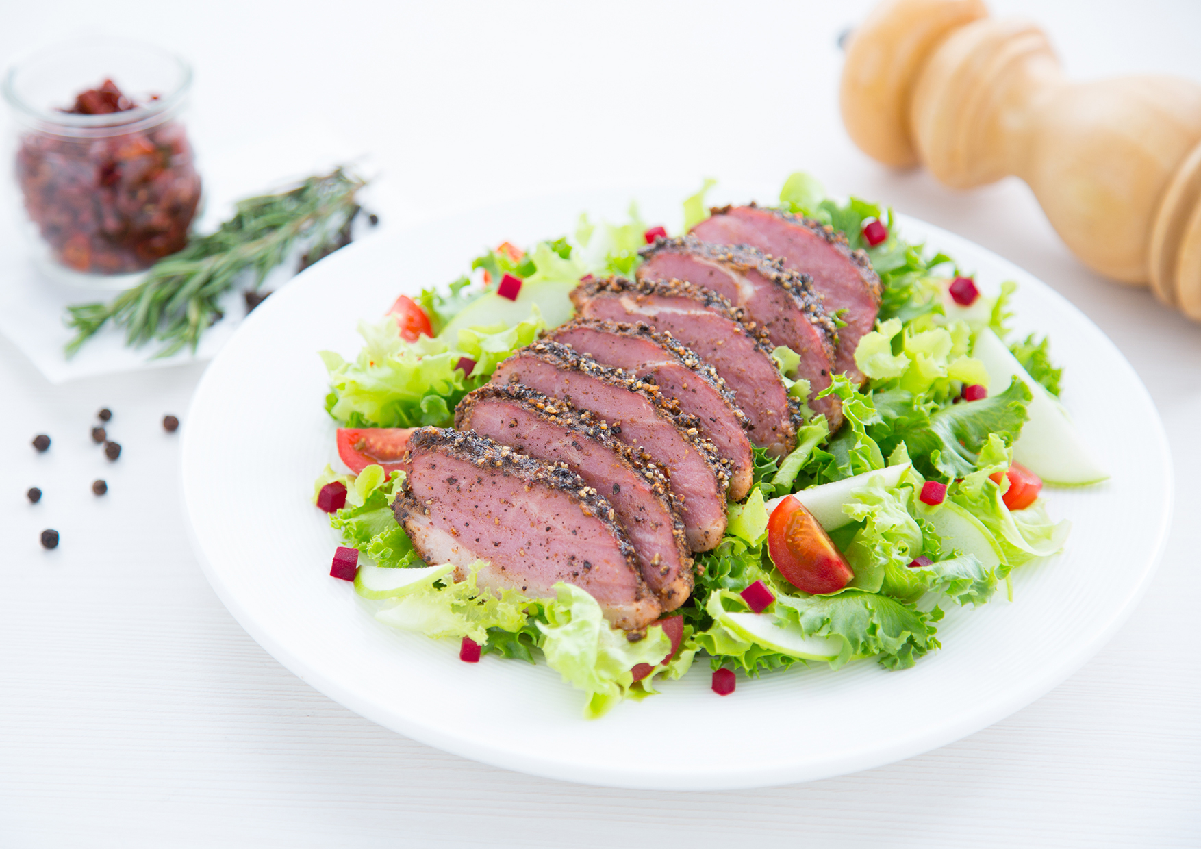 ตามมาด้วย อกเป็ดพาสตรามี่ (Pastrami Duck Breast) อกเป็ดพาสตรามี่แช่แข็ง รสชาติเข้มข้น ได้กลิ่นหอมพริกไทยดำ และเครื่องเทศ อกเป็ดหอมนุ่ม ผ่านการปรุงรสอย่างพิถีพิถัน อร่อยได้อย่างง่ายๆ สะดวก พร้อมปรุง สามารถนำไปทานเป็นเมนูอาหารจากหลัก หรือเมนูเรียกน้ำย่อยก็ลงตัว โดยสามารถ อุ่นร้อนได้หลากหลายวิธีเพื่อให้ได้รสสัมผัสตามที่ชอบ ไม่ว่าจะเป็น การนำลงไปทอดในน้ำมัน หม้ออบลมร้อน เตาอบ หรือ ไมโครเวฟ หั่นสไลด์เป็นชิ้น และรับประทานคู่กับอาหารได้หลากหลายเมนู อาทิ ทานคู่กับสลัดผัด หรือ ทานคู่กับขนมปังแซนด์วิช เหมาะสำหรับเป็นเมนูเรียกน้ำย่อยในงานเลี้ยงสังสรรค์ประจำปีอย่างดูมีระดับ