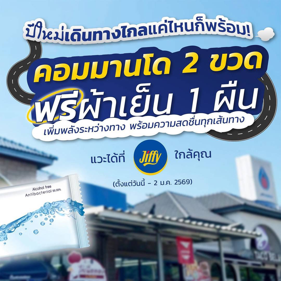 เดินทางไกลแค่ไหนก็พร้อม แดดแรง รถติด ทางยาว - แวะ Jiffy เติมความสดชื่นก่อน คอมมานโด ซื้อ 2 ขวด แถมผ้าเย็น 1 ผืน ฟรี!! มูลค่า 13.- พร้อมลุยต่อทุกเส้นทาง