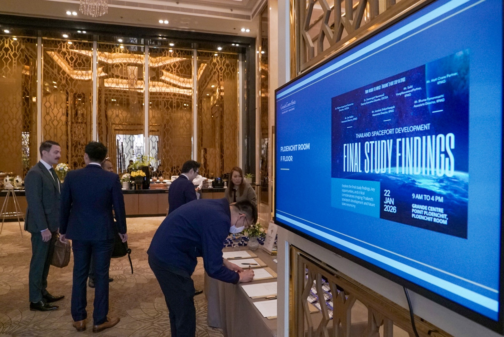 22 มกราคม 2569 สำนักงานพัฒนาเทคโนโลยีอวกาศและภูมิสารสนเทศ (องค์การมหาชน) หรือ GISTDA ภายใต้กระทรวงการอุดมศึกษา วิทยาศาสตร์ วิจัยและนวัตกรรม (อว.) ร่วมกับ บริษัท เคพีเอ็มจี ภูมิไชย ที่ปรึกษาธุรกิจ จำกัด (KPMG) เปิดเผยผลการศึกษาความเป็นไปได้โครงการจัดตั้งท่าอวกาศยาน (Spaceport) ของประเทศไทย ระบุ ศักยภาพของโครงการ ด้วยการเริ่มต้นลงทุนพร้อมผลวิเคราะห์ความคุ้มค่าทางเศรษฐศาสตร์ (Economic NPV) ที่เป็นบวก และผลตอบแทนทางสังคม (SROI) 1.79 เท่า เสนอแผนโรดแมปเริ่มจากระดับ Suborbital เพื่อวางรากฐานโครงสร้างพื้นฐานและบุคลากร ก่อนก้าวสู่การเป็นฮับอวกาศเต็มรูปแบบในอนาคต ณ ห้องเพลินจิต โรงแรม แกรนด์ เซ็นเตอร์พอยต์ เพลินจิต เซ็นเตอร์พ้อยท์เอ็กเซ็กคูทีฟ กรุงเทพมหานคร
