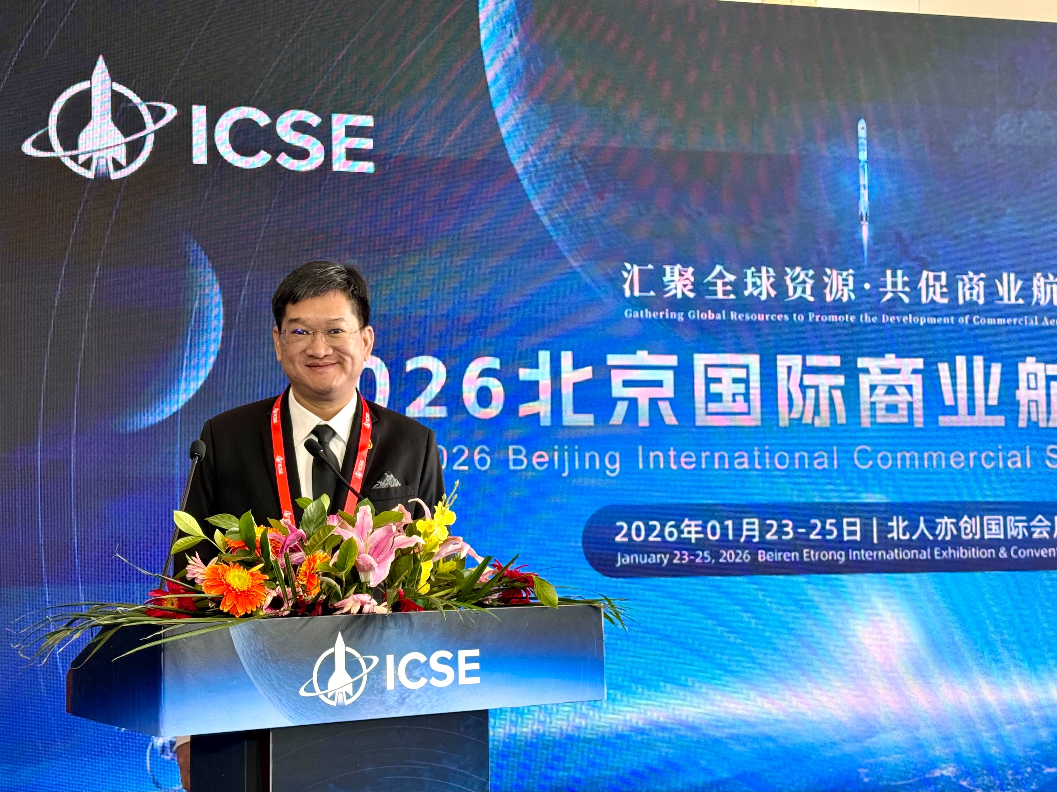 23 - 25 มกราคม สำนักงานพัฒนาเทคโนโลยีอวกาศและภูมิสารสนเทศ (องค์การมหาชน) หรือ GISTDA ภายใต้กระทรวงการอุดมศึกษา วิทยาศาสตร์ วิจัยและนวัตกรรม (อว.) ตบเท้าร่วมงานอวกาศนานาชาติ Beijing International Commercial Space Exhibition 2026 ณ กรุงปักกิ่ง สาธารณรัฐประชาชนจีน ประกาศความพร้อมนำไทยก้าวสู่ยุค Space Economy เต็มรูปแบบ พร้อมข่าวดีที่คนไทยรอคอย กับความคืบหน้าโครงการ "Thai First Astronaut"