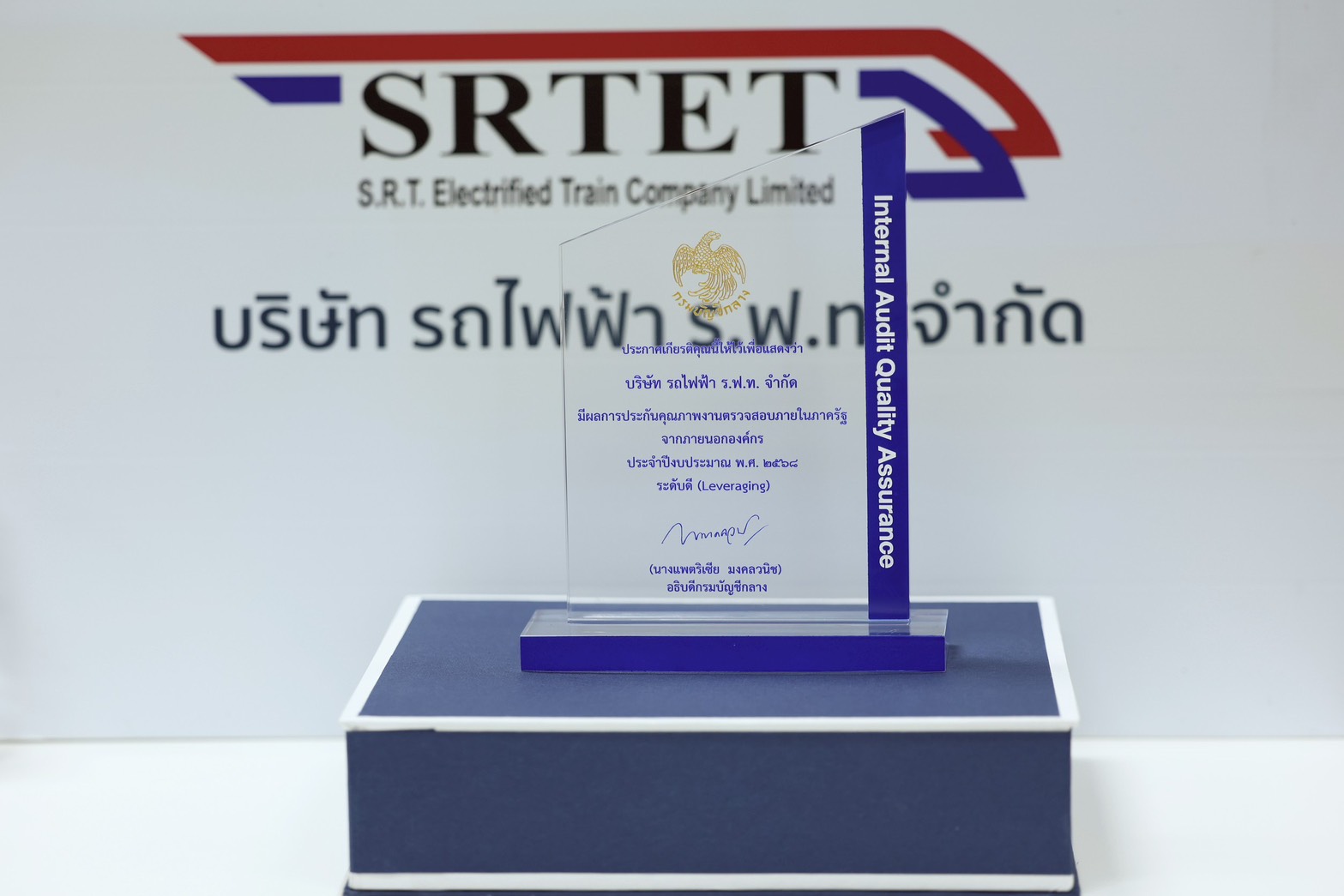 บริษัท รถไฟฟ้า ร.ฟ.ท. จำกัด เข้ารับรางวัลประกาศเกียรติคุณการประกันคุณภาพงานตรวจสอบภายในภาครัฐจากภายนอกองค์กร ประจำปี 2568 “ระดับดี”