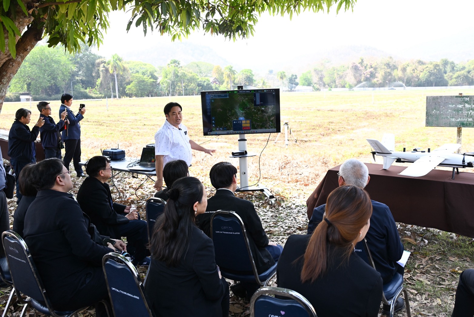 การลงพื้นที่ในครั้งนี้ ได้มีการเยี่ยมชมโครงการเตือนภัยน้ำท่วมเมืองเชียงใหม่ และได้รับชมการสาธิตการบิน UAV เก็บความสูงระดับพื้นดิน เพื่อนำไปใช้วิเคราะห์พื้นที่น้ำท่วม โดย ผศ.ดร.ภูดินันท์ สิงห์คำฟู มหาวิทยาลัยเชียงใหม่