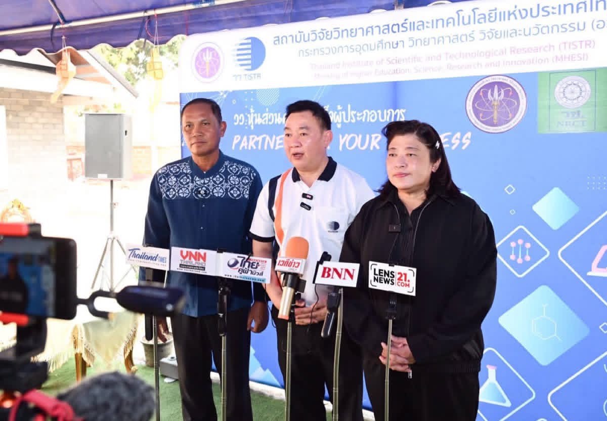 ในโอกาสนี้ ดร.วิภารัตน์ ดีอ่อง ผู้อำนวยการสำนักงานการวิจัยแห่งชาติ ร่วมกล่าวสนับสนุนการพัฒนานวัตกรรม และผศ.ดร.วีรชัย อาจหาญ ผู้ว่าการสถาบันวิจัยวิทยาศาสตร์และเทคโนโลยีแห่งประเทศไทย กล่าวรายงาน พร้อมนี้ นายประสงค์ หล้าอ่อน รองผู้ว่าราชการจังหวัดเชียงราย กล่าวต้อนรับ ณ ศูนย์ฝึกอบรมและสาธิตการแปรรูปวัสดุชีวภาพเพื่อการใช้ประโยชน์ระดับชุมชนวัดหนองปึ๋ง ตำบลจันจว้าใต้ อำเภอแม่จัน จังหวัดเชียงราย
